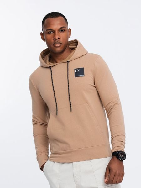 Męska bluza z kapturem kangurka z logotypem – brązowa V3 – Rozmiar: M