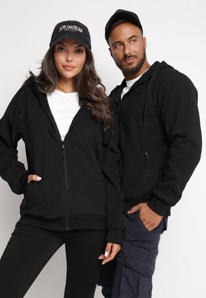 Czarna Zapinana Bluza z Kapturem i Kieszeniami oraz Haftowanym Napisem Jolion