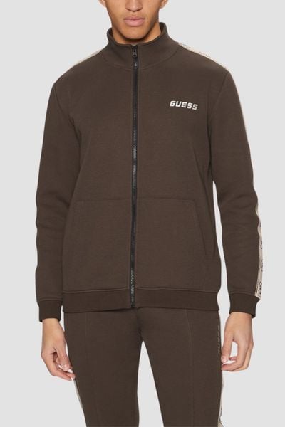 GUESS Brązowa męska rozpinana bluza z lampasami Mickey, Rozmiar M
