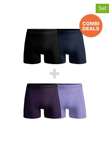 Muchachomalo Bokserki (4 pary) w kolorze czarnym, fioletowym i granatowym rozmiar: XL