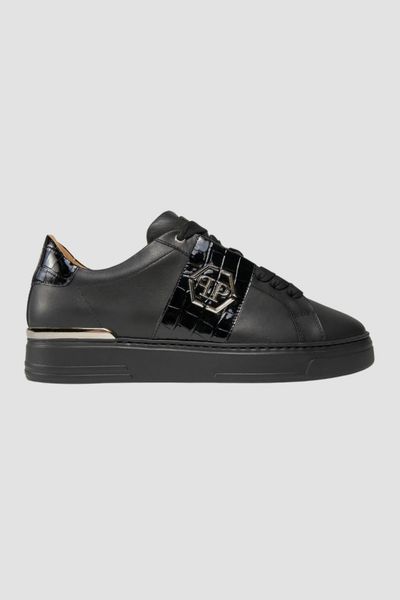 PHILIPP PLEIN Czarne sneakersy Leather Lo-top, Rozmiar 46