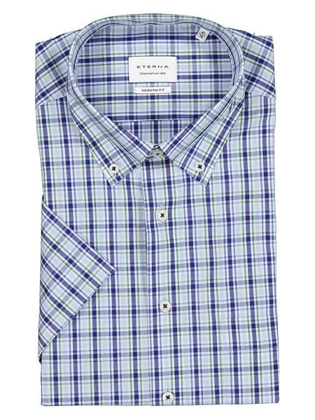 – czysta bawełna- fason: modern fit- kołnierz: button-down- zapięcie: listwa guzikowa- długość rękawa: krótki- kieszenie: na piersi- krój: wąski- wzór: kratka