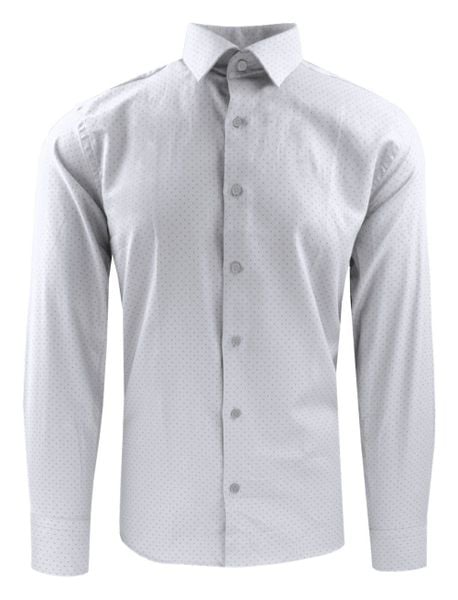 Męska, Taliowana Koszula Wizytowa – Victorio – Biała w Groszek