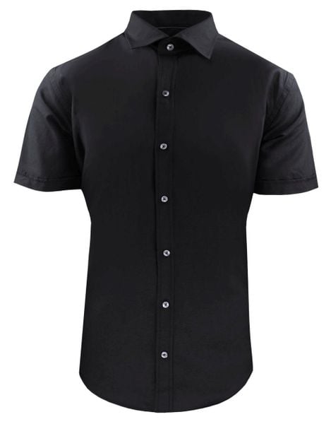 Taliowana Koszula Elegancka, Krótki Rękaw – Quickside – Czarna