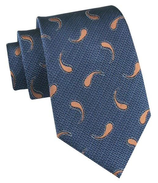 Jedwabny Krawat Męski – His Story – Niebieski w Beżowe Paisley
