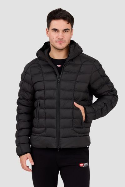 DIESEL Czarna pikowana męska kurtka z kapturem W-STONE, Rozmiar 48