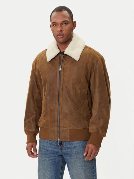 BOSS Kurtka skórzana Jonier 50547567 Beżowy Relaxed Fit