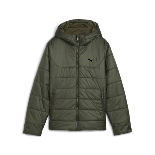 Młodzieżowa kurtka ocieplana Essentials z kapturem PUMA Dark Olive Green