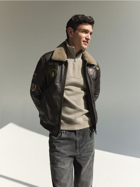 Kurtka o swobodnym kroju, wykonana ze skóry naturalnej.