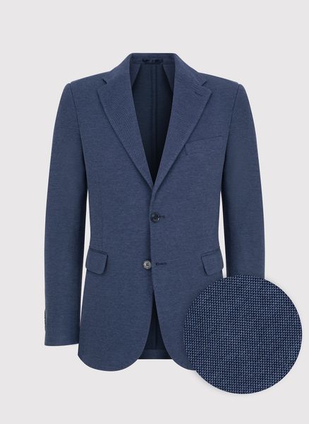 Granatowa marynarka męska – Pako Lorente. Dzianinowa marynarka wiosenna. Skład: 55% bawełna, 45% poliester. Fason Slim. Marynarka jednorzędowa.