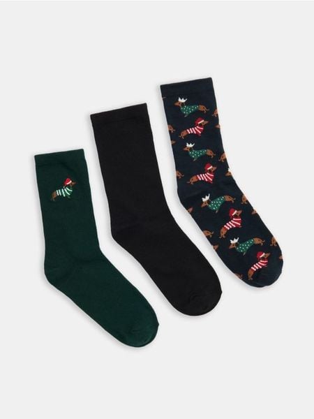 Sinsay – Prążkowane skarpetki z motywem świątecznym 3 pack – wielobarwny –