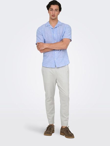 – z dodatkiem lnu- fason: Tapered fit- krój nogawek: wąski- pas: ściągacz tunelowy- kieszenie: wpuszczane i tylne- look: jednokolorowy