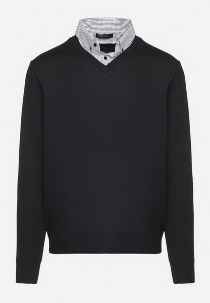 Sweter męski z dekoltem "w serek" z koszulowym kołnierzykiem - granatowy V2