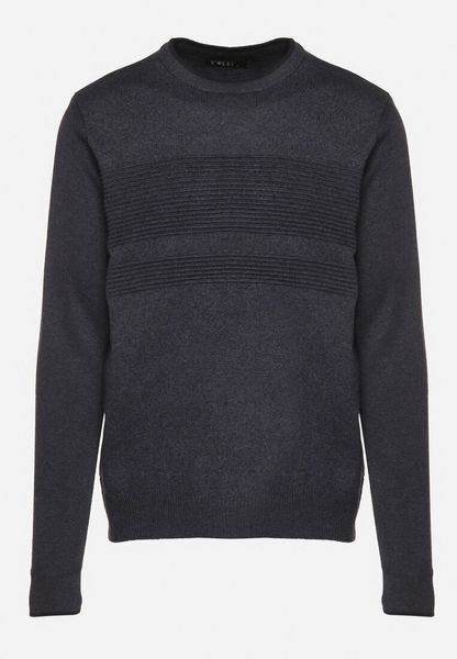 Granatowy Wiskozowy Sweter z Okrągłym Dekoltem o Klasycznym Kroju Manohari