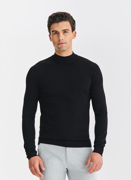 Czarny sweter męski – Pako Lorente. Jesienny sweter męski w kolorze czarnym. Prosty fason. Półgolf męski. Skład: 80% wiskoza, 20% poliester.