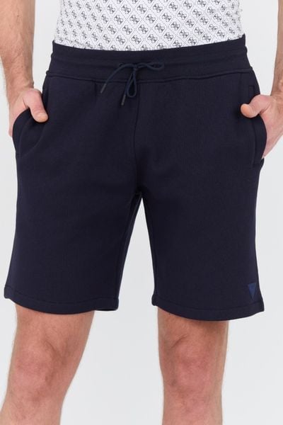 Granatowe spodenki Aldwin Short Pant, marki Guess.Wymiary modela: wzrost: 190 cm, klatka: 107 cm, pas: 93 cm.Model ma na sobie produkt w rozmiarze: L.Wymiary produktu w rozmiarze L: Szerokość w pasie: 44 cm, długość nogawki od zewnątrz: 49,5 cm, długość nogawki od wewnątrz: 23,5 cm.