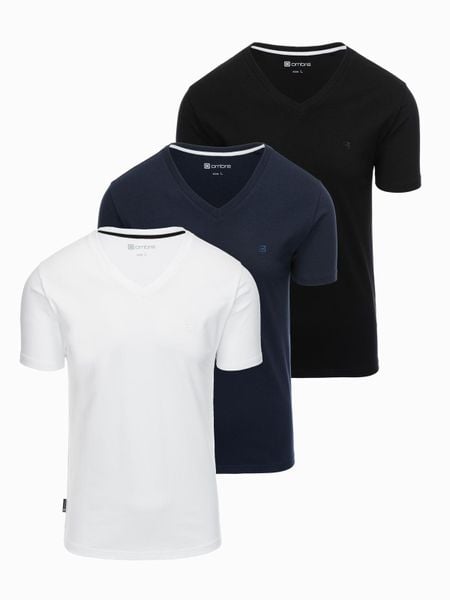 Komplet koszulek z dekoltem V i elastanem oraz subtelnym logotypem 3-pak – mix biały/granatowy/czarny V1 – Rozmiar: XL
