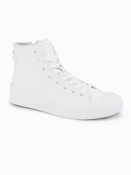 Męskie trampki z wysoką cholewką z zamkiem ułatwiającym zakładanie – białe V2 – Rozmiar: 44